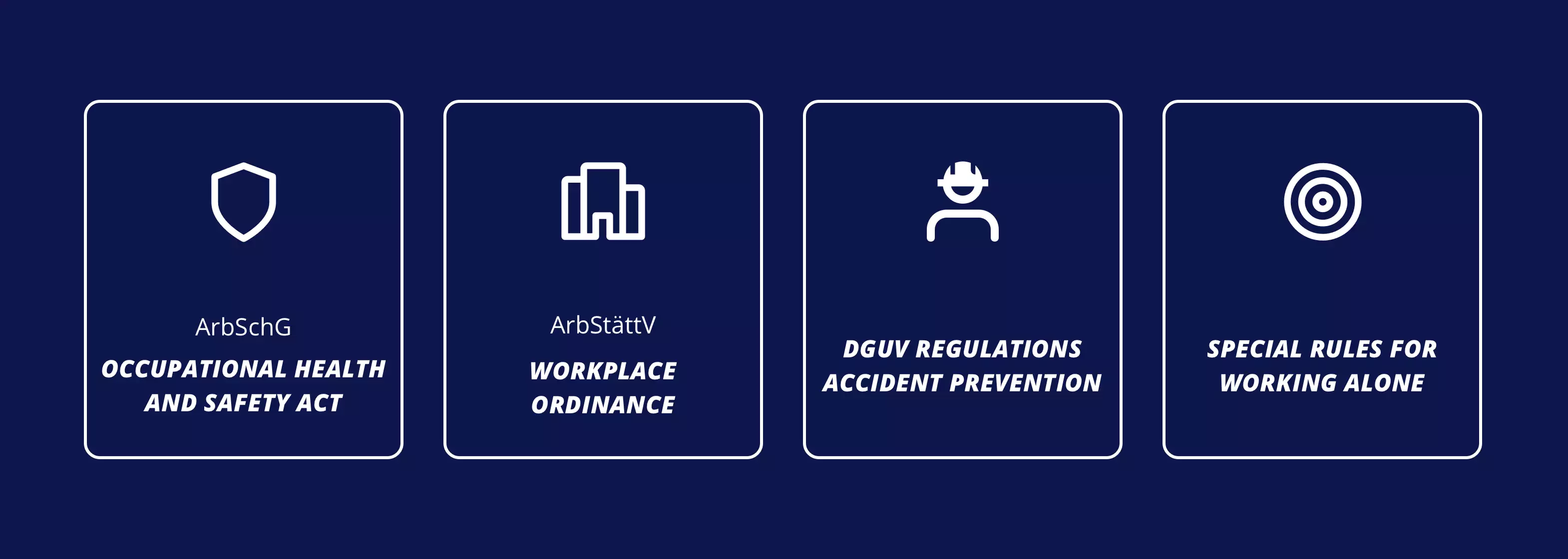 - Occupational Health and Safety Act (ArbSchG): Regulates the basic obligation of employers to avoid risks and to take measures to protect employees.