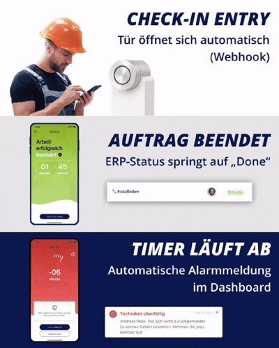 Ein weiteres starkes Beispiel sind Webhooks – ein Prinzip, bei dem definierte Ereignisse in der Entry App automatisch ein Signal an externe Systeme senden und umgekehrt. Ob Türöffnung, Statusänderung oder Sicherheitsmeldung: Der Außendienst wird damit nicht nur sicherer, sondern auch nachvollziehbarer. Die Verknüpfung mit einem Türschließsystem ist nur eines von vielen denkbaren Szenarien.